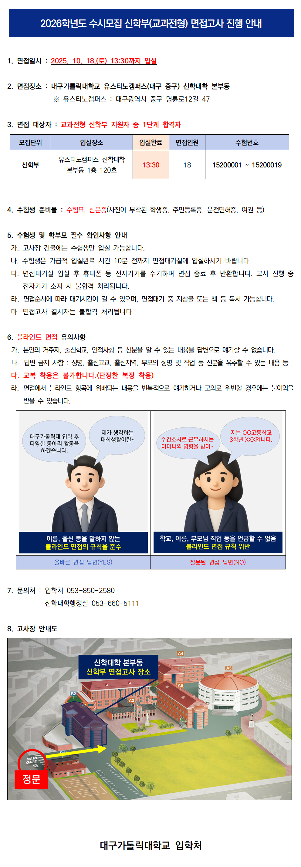 2026학년도 수시모집 가톨릭지도자추천전형(약학부 제외 전체 모집단위) 1단계 합격자 발표 및 면접고사 진행 안내