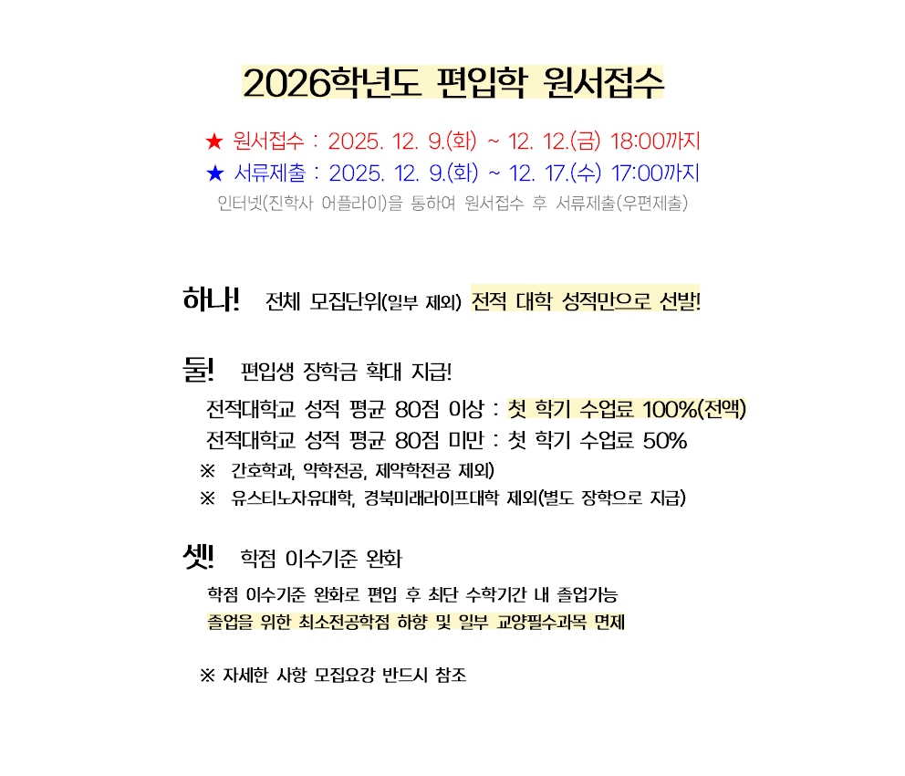 2026학년도 편입학 원서접수 마감 안내 (최종 경쟁률 확인)