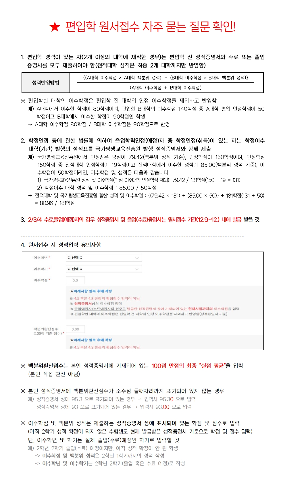 2026학년도 편입학 원서접수 안내 (안내사항 및 자주 묻는 질문 등)
