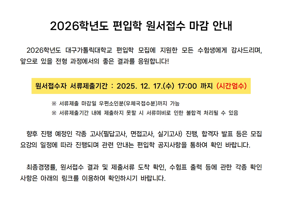 2026학년도 편입학 원서접수 마감 안내 (최종 경쟁률 확인)
